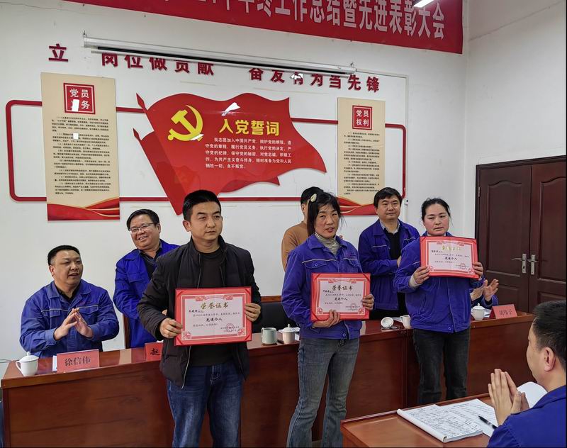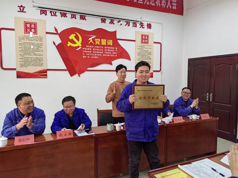 公司副總經(jīng)理趙永強宣讀了《關(guān)于兌現(xiàn)2024年度安全承包獎的決定》、《關(guān)于表彰2024年度先進(jìn)班組和先進(jìn)個人的決定》,對2024年年度工作中作出突出貢獻(xiàn)的炭材運行三班先進(jìn)班組、柴彬等8名先進(jìn)個人予以表彰,并頒發(fā)了先進(jìn)集體獎等四項集體獎牌以示鼓勵。